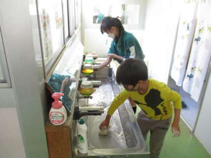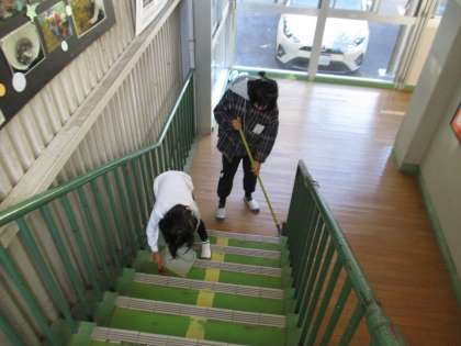 縦割り班のメンバーと協力してしっかり掃除をしてくれています。