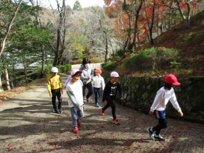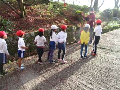 マラソン練習は、今日からいよいよ外周を走ります。まずは、学年ごとにコースを歩いて危険なところを確認しました。