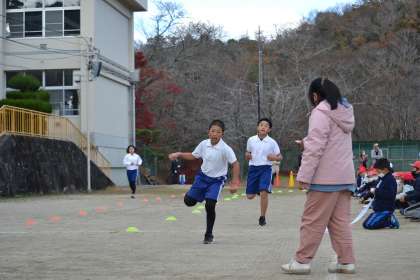 最後は5・6年生のスタートです。桜坂を4周通る約2kmのコースを走ります。6年生にとっては最後のマラソン大会となります。きつい桜坂の上りも歯を食いしばって走る姿が立派でした。