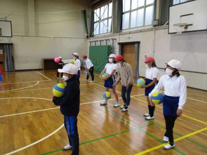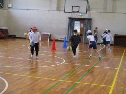 3・4年生の体育の授業の様子です。ボールを使って楽しく運動していました。