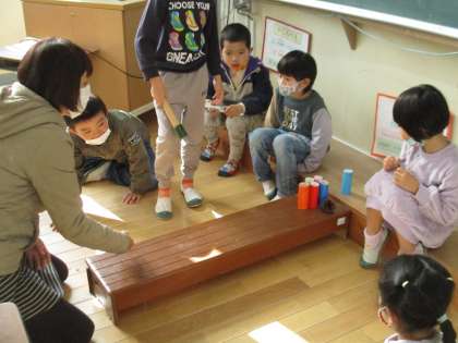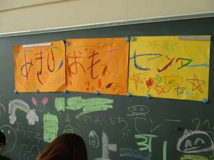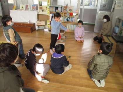1年生がこども園の子と交流会を行いました。これまでいろいろな学年の子を招待して「秋のおもちゃセンター」を開いてきましたが、今日がその本番の日です。1年生は、これまで練習してきたことを生かして、とても上手に司会進行や説明をすることができました。1年生のおかげで、こども園の子も先生たちもとても楽しそうでした。みんなが幸せになった時間でした。