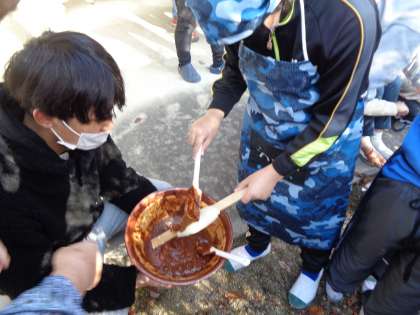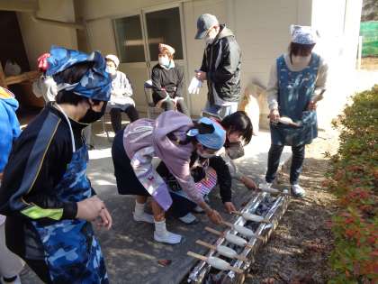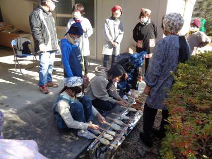 次に、炭火で素焼きをしてからみそを塗り、二度焼きをしました。とてもおいしそうな五平餅ができあがりました。
