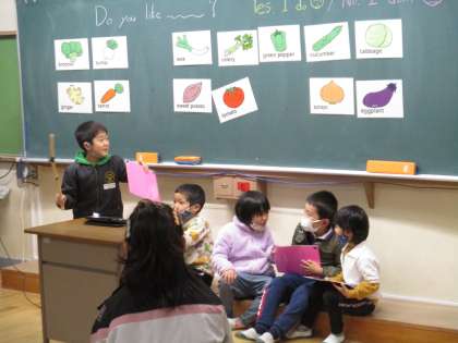 Eタイムの様子です。英単語カードを使って楽しく英語に親しんでいました。6年生はいつも優しく1・2年生と接してくれています。1・2年生もとても嬉しそうです。