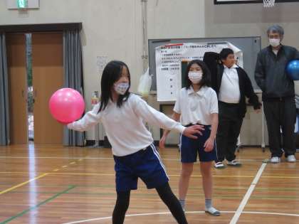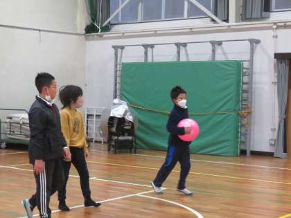4年生のお楽しみ会の様子です。初めに体育館でドッジボールをしました。