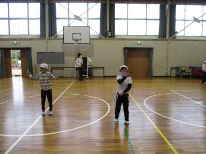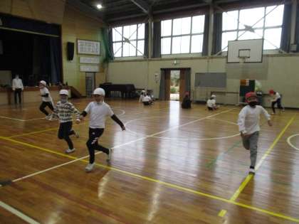 3・4年生の体育の授業の様子です。ウオーミングアップでいろいろなダッシュをして体を温めていました。その後、なわとびの練習を頑張っていました。
