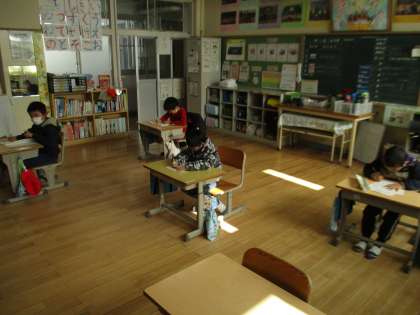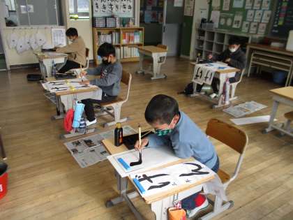 今日は書初め大会がありました。これまでに練習してきたことを生かし、子どもたちはみんな集中して真剣に取り組んでいました。