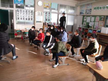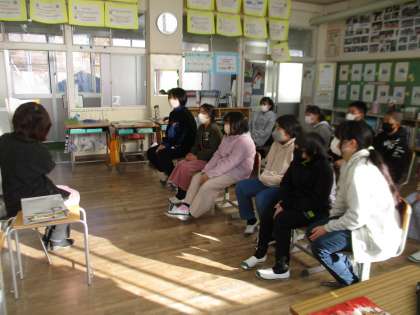 今日はお話ポケット(読み聞かせ)の日でした。低・中・高学年にそれぞれ分かれて、学校図書館司書さんやボランティアの方の読み聞かせを聞きました。子どもたちは集中してお話を聞いていました。