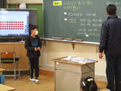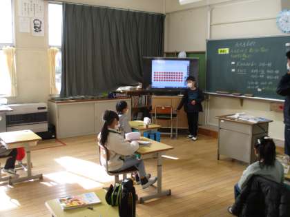 昨日と今日の2日間フリー授業参観を実施し、多くの保護者の方々にお越しいただきました。子どもたちはお家の方の姿を見つけると、少し恥ずかしがりながらもとても嬉しそうでした。体育館に展示した書初め作品も見ていただきありがとうございました。写真は2年生の算数の授業の様子です。