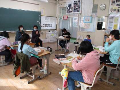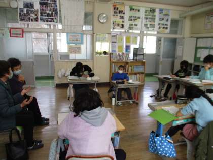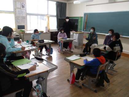 5年生の総合的な学習の時間の様子です。地域講師の方2名に来ていただき、米作りについて子どもたちがいろいろ質問をしました。