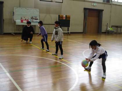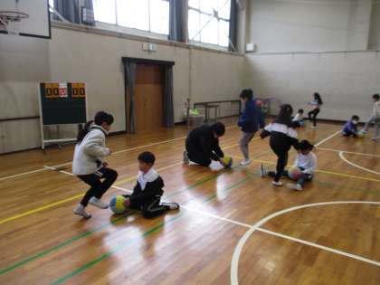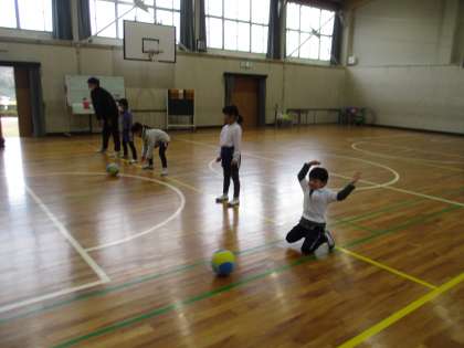 1・2年生の体育の授業の様子です。ボールを使っていろいろな運動をしていました。