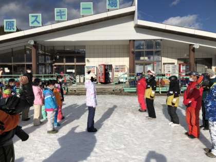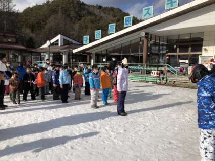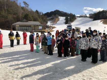 閉講式の様子です。児童代表の6年生がインストラクターの方々にお礼を述べ、みんなでお礼を言いました。