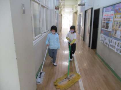 今日は各学級での掃除の日でした。1・2年生は協力して掃除をしていました。みんな頑張って取り組むことができていました。
