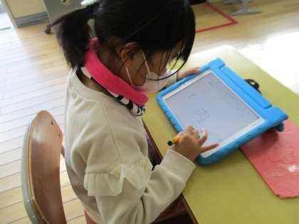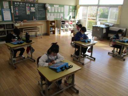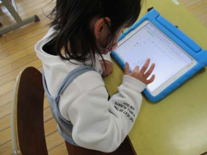 2年生の国語の授業の様子です。学習用タブレットでQubena(キュビナ)を使って漢字の復習をしていました。