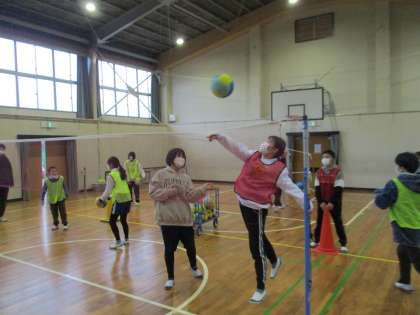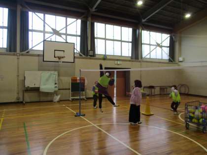 5・6年生の体育の授業の様子です。今日はバレーボールの練習をしていました。投げ上げたボールを上手にアタックしていました。