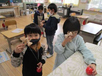 1・2年生が、2月の学習発表会に向けて準備を進めていました。1年生はけん玉の練習を、2年生は英語の練習をしていました。本番ではどんな発表をしてくれるのか、今からとても楽しみです。