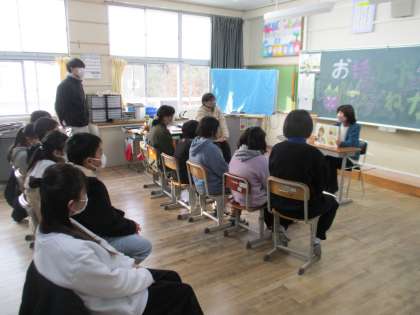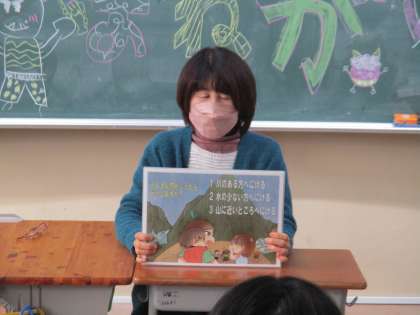 今日は臨時のお話ポケットがあり、5・6年生が47災害について書かれた紙芝居のお話を聞きました。この紙芝居は、地域にある加茂丘高校の生徒が作成し、小学校に寄贈してくれたものです。子どもたちは地域コーディネーターさんの読み聞かせを真剣に聞き、自分たちの住む町に50年前に起きた災害について学んでいました。子どもたちにはこれからもこの災害を忘れずに、語り継いでいってほしいと思います。