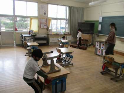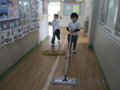 今日は委員会の日なので、1〜3年生で掃除をしました。教室や廊下などを協力して掃除していました。1年生もしっかり掃除できていて感心しました。