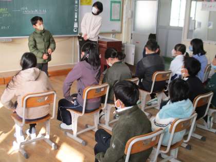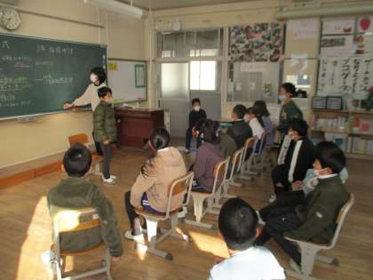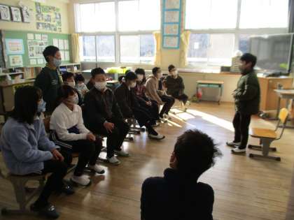 3・4年生のスピーチの様子です。3年生の子が、野球チームでの出来事を話していました。聞いている子から、いろいろ質問も出されていました。