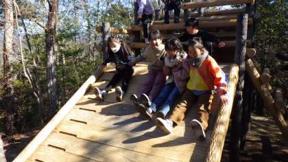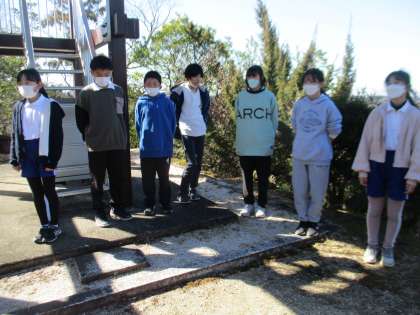 景色を見た後、6年生は校長先生に6年間の思い出と感謝の言葉を伝えました。その後、みんなで遊具で遊びました。