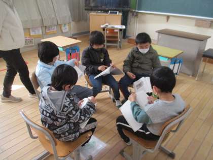 1年生の国語と3年生の外国語活動の様子です。1年生は円になって国語の教科書の物語文を読んでいました。3年生はALTと一緒にクイズなどで楽しく英語を学んでました。
