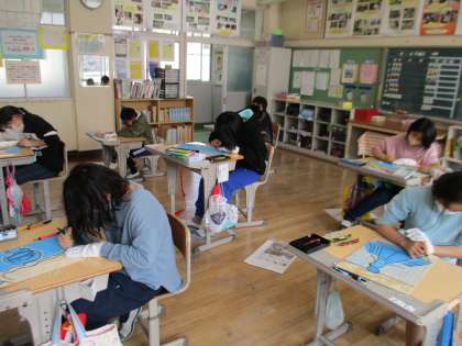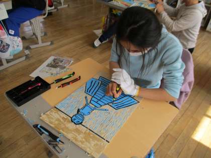 5年生の図工で木版画を作成していました。学校生活の思い出の場面を題材にして一生懸命に掘り進めていました。出来上がりが楽しみです。