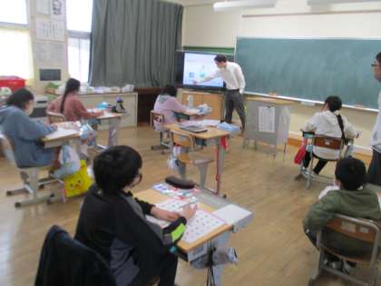 5年生の英語の授業の様子です。ALTと会話しながら楽しく英語の勉強をしていました。