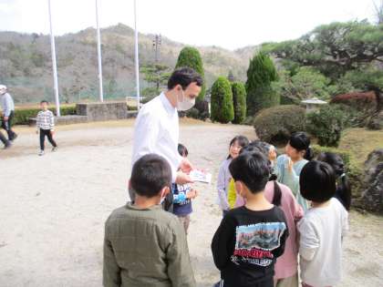今日がALTとの最後の授業でした。各学年の子どもたちが手紙を渡すなどして感謝の気持ちを伝えました。最後に全校で記念写真を撮りました。ALTが楽しく授業をしてくれたおかげで、御作小の子どもたちは英語が大好きになりました。