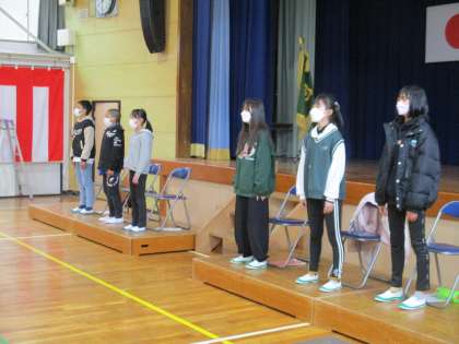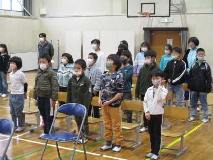 来週の卒業式に向けて全校で卒業式の練習をしました。