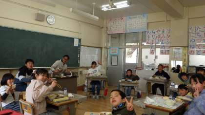 1・2年生と6年生の最後のEタイムの様子です。この1年間、やさしい6年生のお兄さんお姉さんと英語を通してふれあったことで、1・2年生は英語が大好きになりました。また、最後に1年生と6年生とで一緒に給食を食べました。6年生にとって、素敵な思いがまた1つ増えましたね。