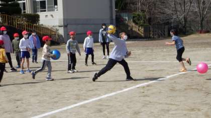 最後の縦割り班遊びの様子です。みんなでドッジボールをしました。6年生と遊べるのは最後ということで、みんないつも以上に6年生とふれあい楽しい時間を過ごしました。最後に、6年生から手作りのプレゼントが手渡され、1年生から5年生の子どもたちはとても喜んでいました。6年生のみなさん、これまで学校のリーダーとして全校のみんなを引っ張ってくれてありがとうございました。