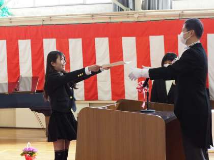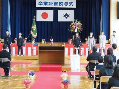 春の日差しがふりそそぐ素晴らしい天候の中、御作小学校第76回卒業証書授与式が挙行されました。入場時は少し緊張した表情の6年生でしたが、立派な態度で卒業証書を受け取りました。