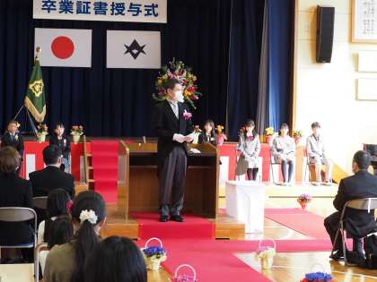 校長式辞に続き、来賓の方々から祝辞やお祝いの言葉をいただきました。
