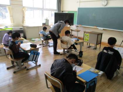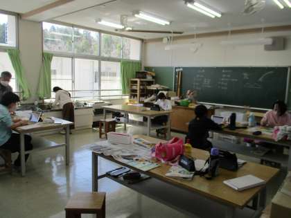 3年生はタブレットを使って学習していました。4年生は漢字の学習をしていました。5年生は図工で版画の印刷をしていました。