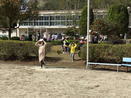 避難してくださいという放送で、スムーズに運動場に避難できました。