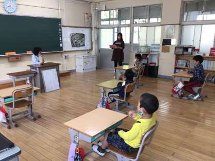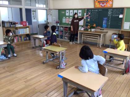 日直さんがリズムにのって、健康観察をしていました。もちろん「元気です」という返事もリズムにのって答えていました。