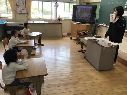 教科書に数図ブロックを置いて、かずと数字の確認をしました。
