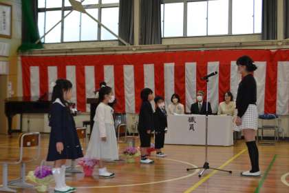 新1年生の子たちは代表の子からお祝いの言葉やプレゼントをもらいました。