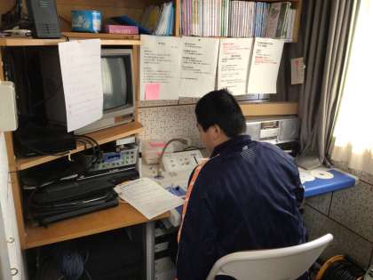 「石鹸での手洗いをこまめにしましょう」と今日の目標を呼びかけていました。
