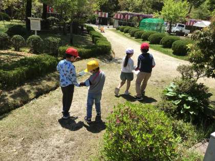 2年生の子が1年生の子の手をつないでいる姿は微笑ましいです。