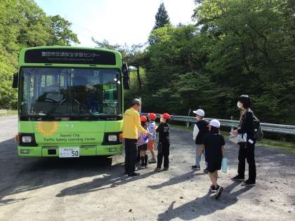 校舎内のみんなに聞こえるように、元気よく「行ってきます」を言って、バスが止まっているところまで移動しました。
