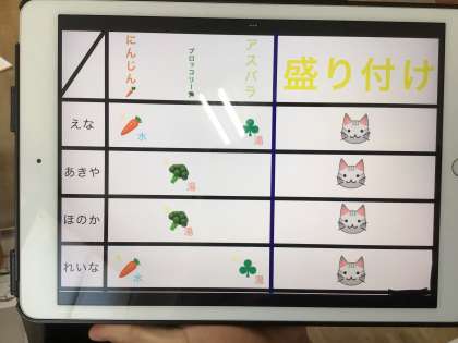 タブレット上で、役割分担を上手にまとめています。
