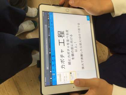 こちらの班は、カボチャとじゃがいも、枝豆、たまごで、ゆで野菜サラダを作るようです。