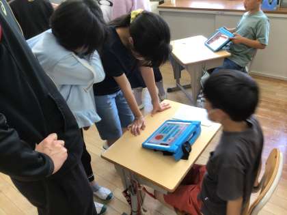 黒板に調べたことをまとめてあります。6年生の子たちが真剣に読んでいます。