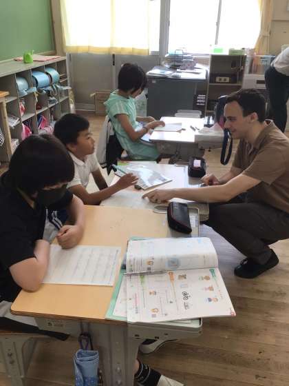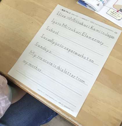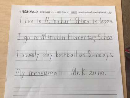 書けた人から友達や先生に英語で自己紹介をしていました。