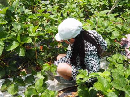 3、4年生で地域の方の畑にいちご狩りに行きました。