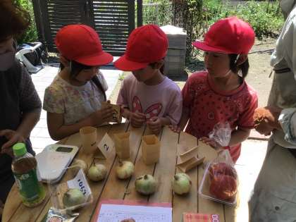 いちごの重さを計ったり、同じ封筒はどれかみつけたり、こいのぼりの竿の長さを当てたりしました。