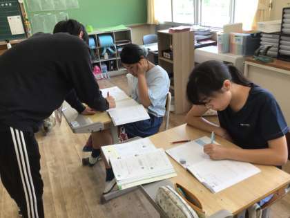 一人でじっくり解いていたり、教え合ったりしていました。