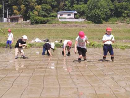 泥だらけになりながら一生懸命田植えをしました。