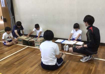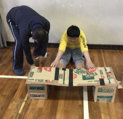 前屈の記録をとる前に、柔軟をしました。 その後、測定をしました。