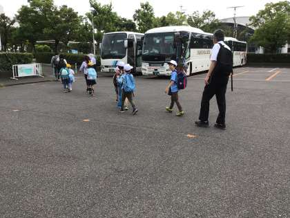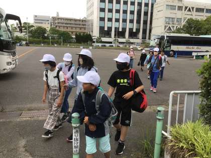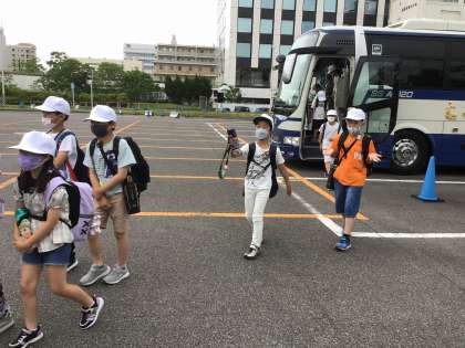 船に向かって、おはようございますと言いながら歩いている子たちがいます。